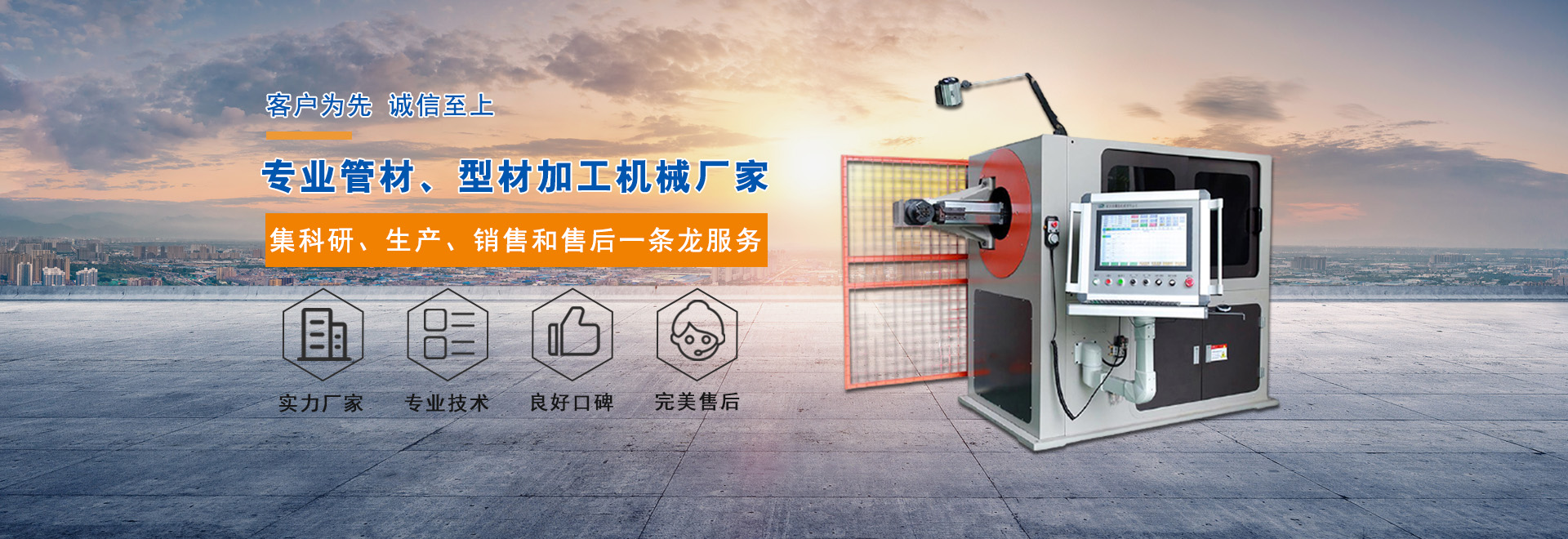 廈門蘇港機械設備有限公司位于風景優美的鷺島——廈門,公司是一家集科研、生產、銷售為一體的企業,嚴格的品質管理與完善的善后服務、合理的市場價格是我們力于競爭的前提。 精益求精當然出類拔萃,公司在原有的技術基礎上,不斷的引進國內外先進技術和管理辦法。專業制造系統金屬圓鋸機、DW系列單頭彎管機、SW系列雙頭彎管機、SG系列管端成型機、SG鋸片研磨機、YW系列龍門柱式壓管機、空心鉚接機、系列倒角機等八大類近五十個品種的各類管材、型材加工機械。